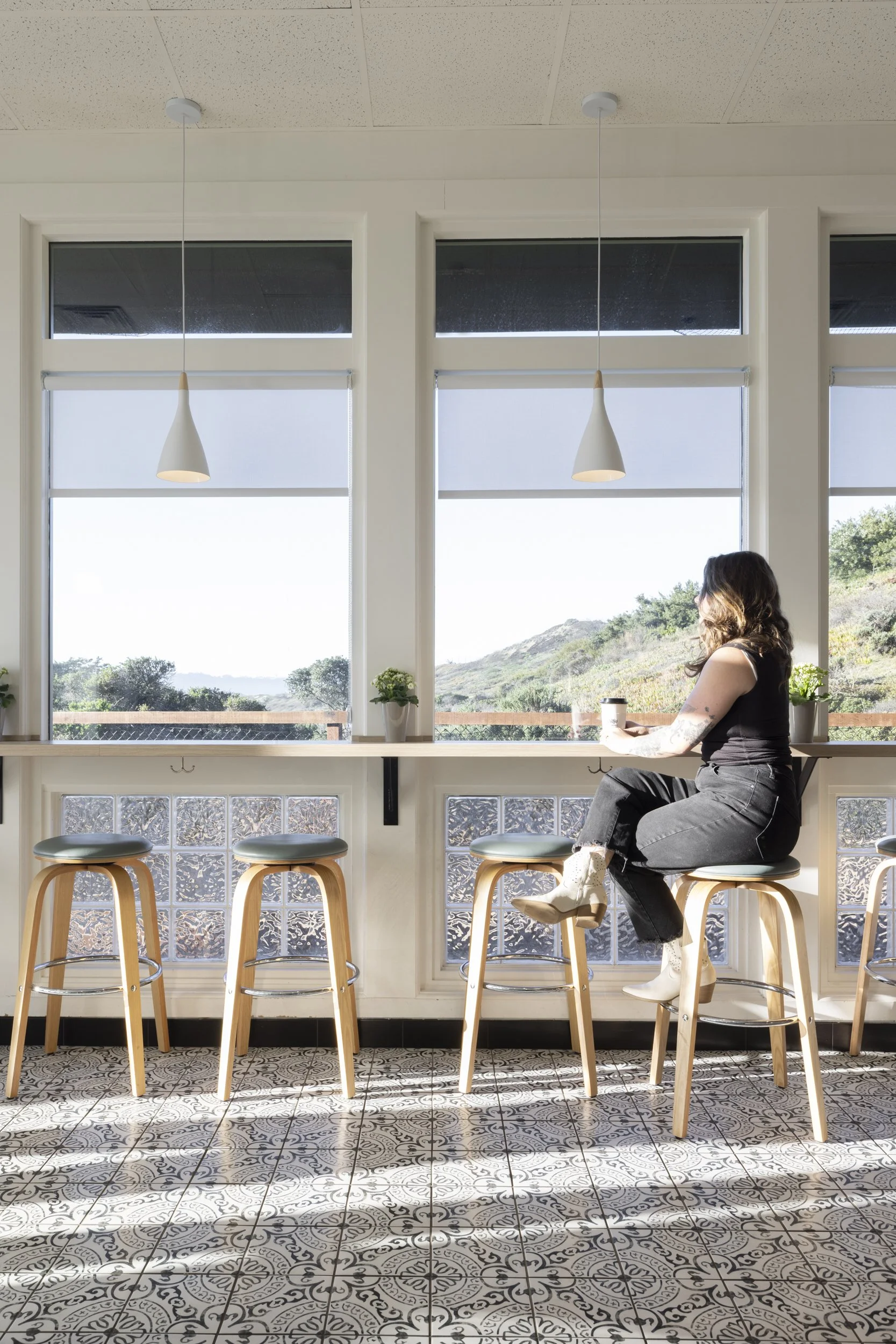 We approached this commercial renovation with a singular focus: create a place where community, comfort, and craft converge. What was once a branded retail interior is now a refined yet approachable cafe that responds to its context — light-filled, warm, and quietly intentional. Gentle wood tones and patterned tile ground the entry, while custom joinery and soft, layered seating invite people to linger. Thoughtful lighting and calming color bring balance to the everyday rhythm of coffee culture.