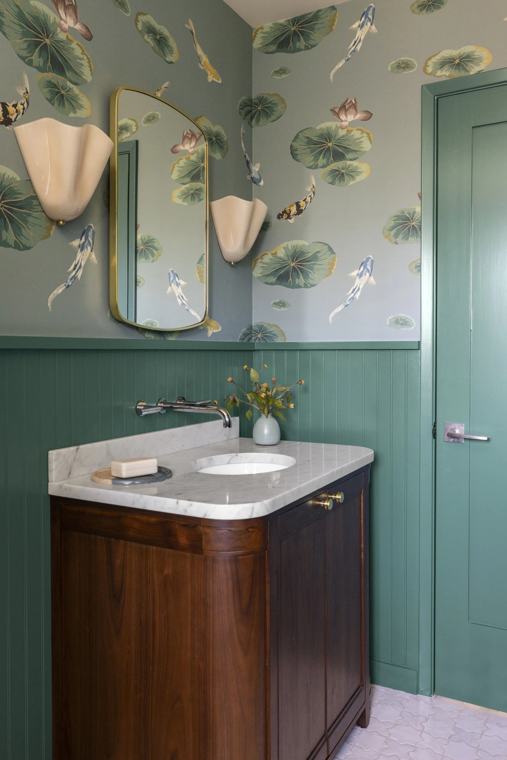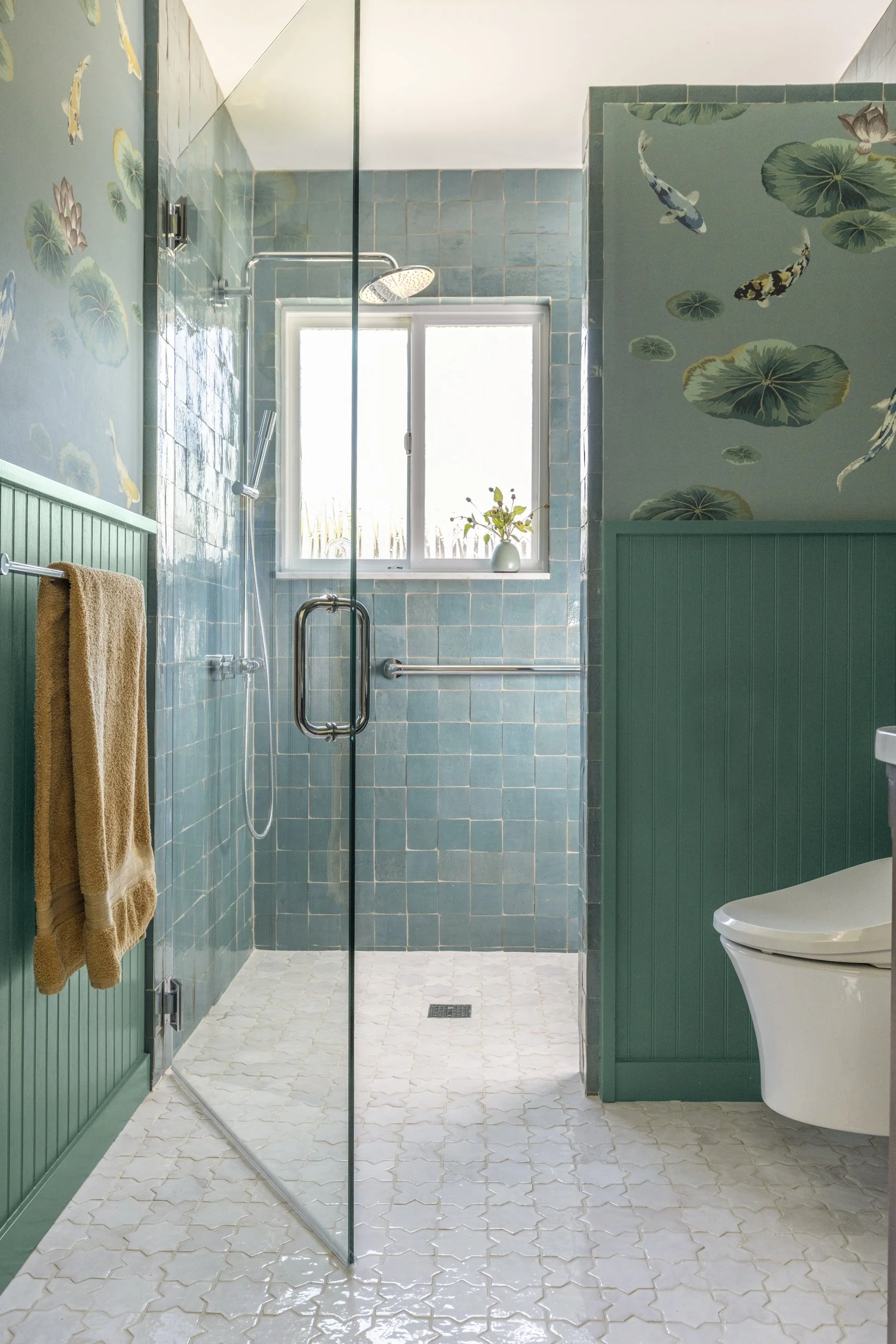 A modest home in the heart of the Westside of Santa Cruz boasts a fun personality every way you look. When the owner approached Viewpoint with the idea of expanding her kitchen into tall ceilings with flanking fenestration and sky lights we knew we needed to be apart of it. What was once a small, enclosed kitchen with no space for a breakfast nook, now holds all the sunshine and seating she could imagine. While in the process of updating the kitchen we helped alleviate needs in the primary bedroom by incorporating an ensuite so the homeowner now has a dedicated bathroom of her own. And the koi fish? What’s not to love.